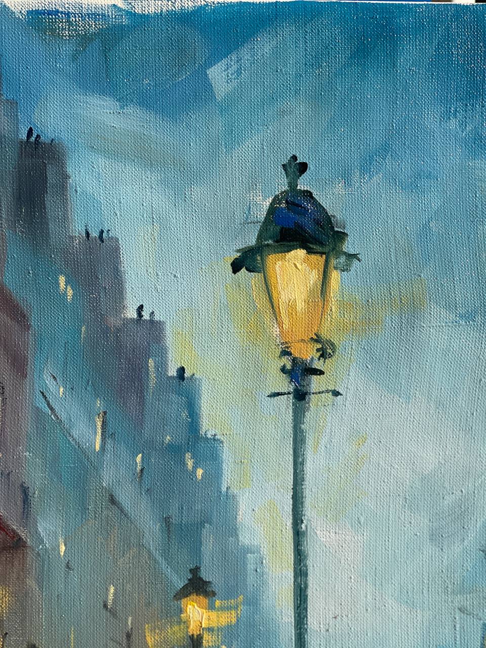 ✨Погрузитесь в атмосферу уютного городского вечера. На этом мастер-классе мы вместе создадим изысканную картину уличной сцены, погружённой в мерцание огней, влажных бликов мостовой и лёгкого, почти невесомого тумана.