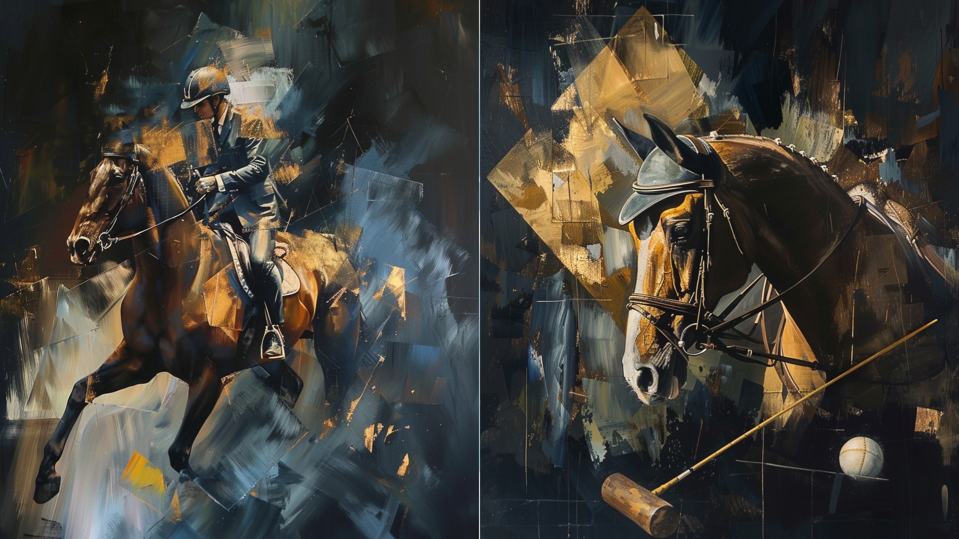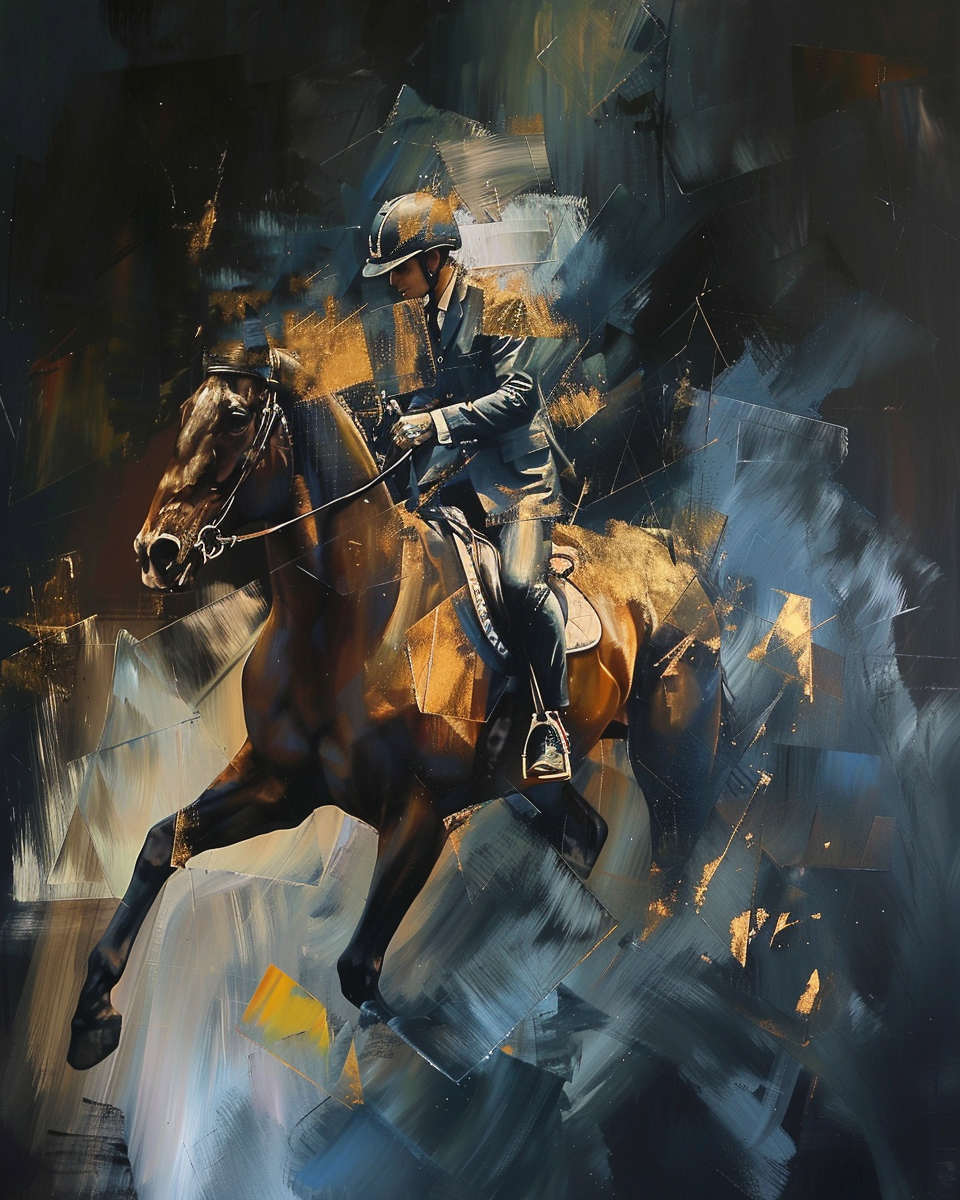 💛 Погрузитесь в мир динамики и элегантности конного спорта, создавая картины в современной авторской манере.