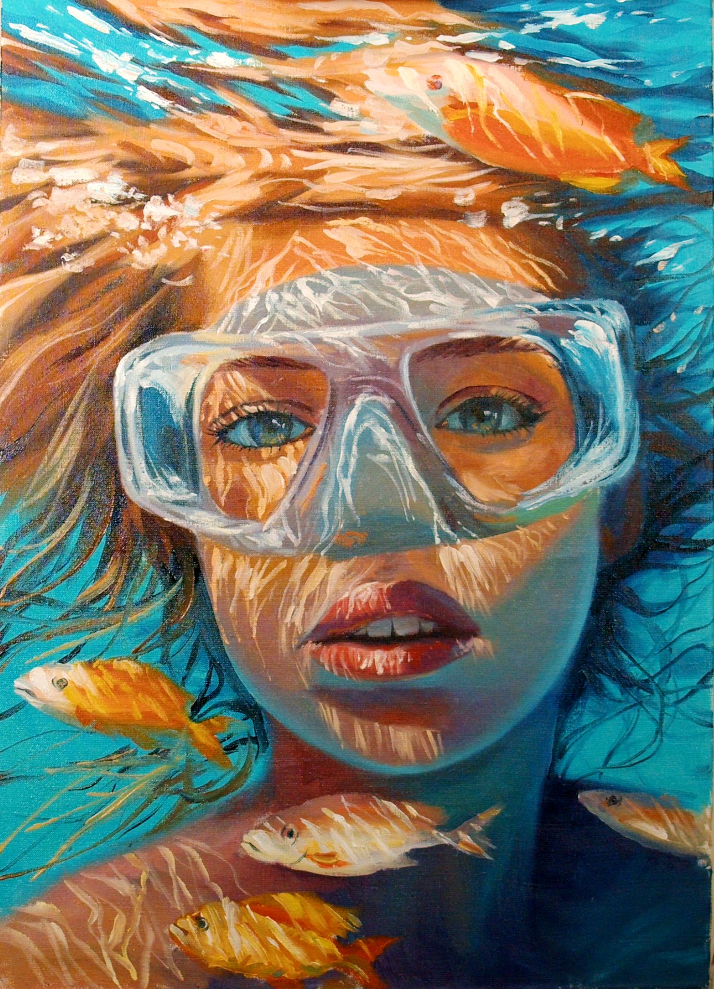✔️Работать с портретом под водой: передавать черты лица сквозь толщу воды и маску;